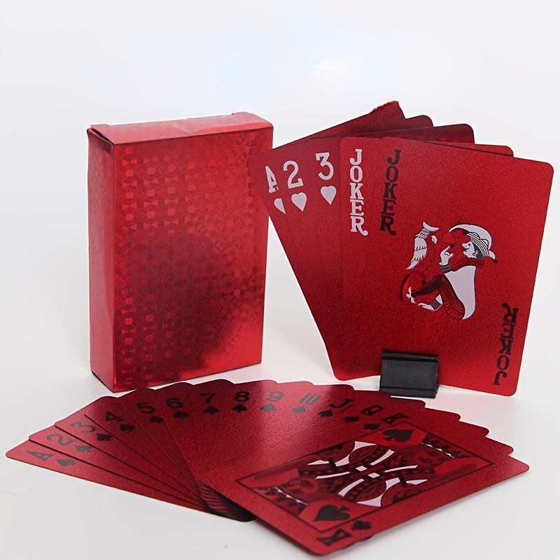 TEMU 55장의 레드 포커 카드 세트, 방수 및 세탁 가능, 금속 장식, 내구성 있는 두꺼운 플라스틱, 편안한 그립, 부드러운 셔플링, 파티 및 이벤트에 적합