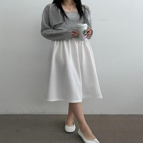[다잇템]여자 롱 귀여운 흰색 고무줄 후레아 스커트