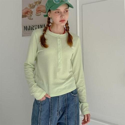 [브이와이][VY] 여자 롱슬리브 엷은 화이트 단추티 U넥 편한 티셔츠_16235268_588847