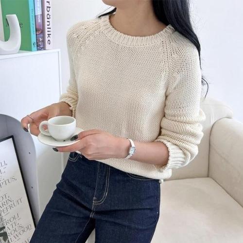 [다잇템][다잇템] 여자 U넥 미니멀리즘 스웨터 화이트 라글란 롱슬리브 티셔츠_14798069_588872