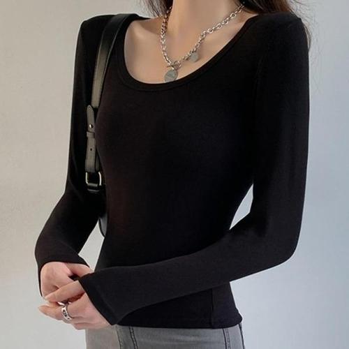 [옷자락]여자 흰색 유넥 검정 U넥 민무늬 롱슬리브 티셔츠
