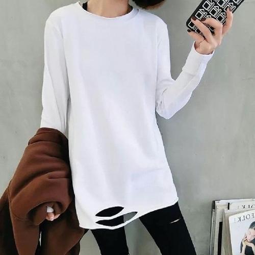 [엄지척]긴팔 흰티 여성 레이어드 티셔츠 긴 롱 티 엉덩이덮는_19643183_667501