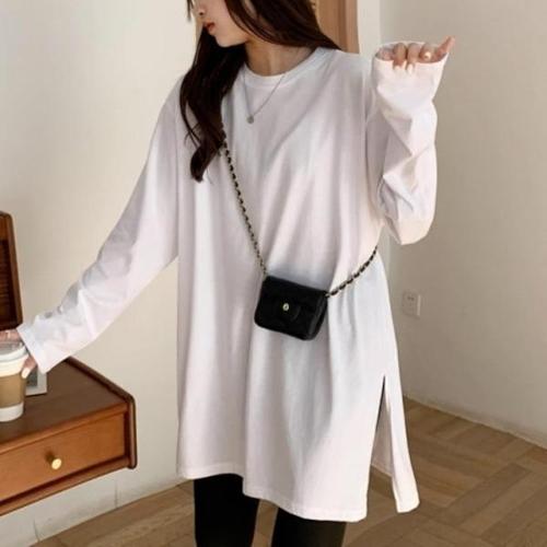 빅사이즈 롱 티셔츠 코튼 라운드 넥 밑트임 면 100% 여성 여자 데일리 tee 55-100 size
