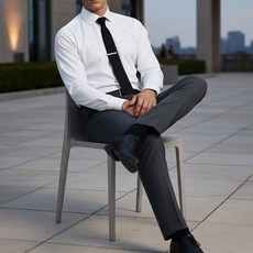 엘르 남성 사계절 링클프리 폴리 사방스판 솔리드 배색 화이트 슬림핏 긴소매 셔츠 97551