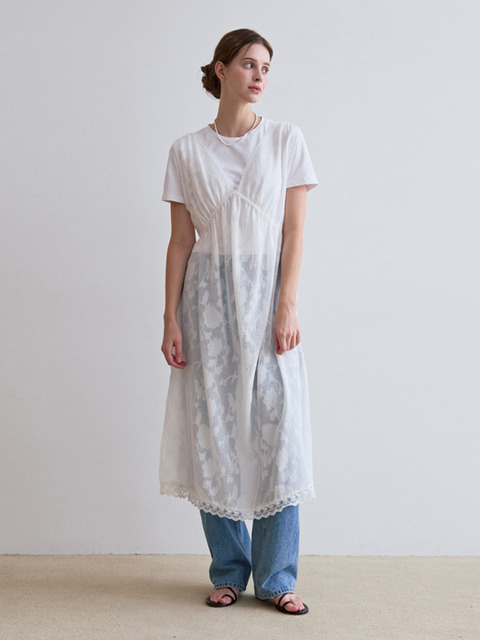 [에프코코로미즈] 클래식 시스루 레이어드 원피스 화이트
