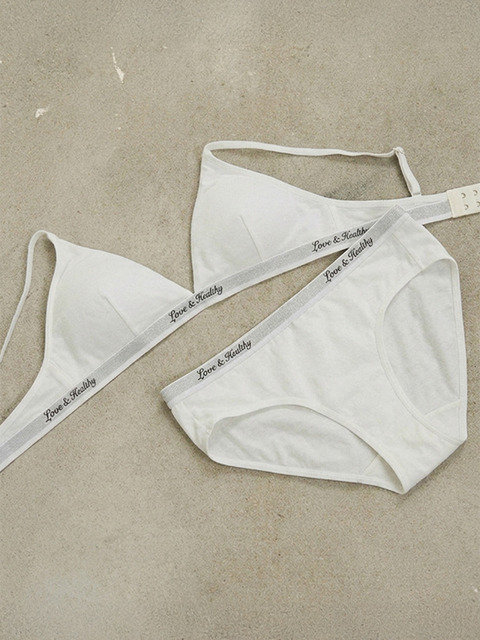 [로맨틱스] 아웃밴드 프리미엄 코튼 스판 Raw 스킨 Set 2 화이트[브라렛+팬티]