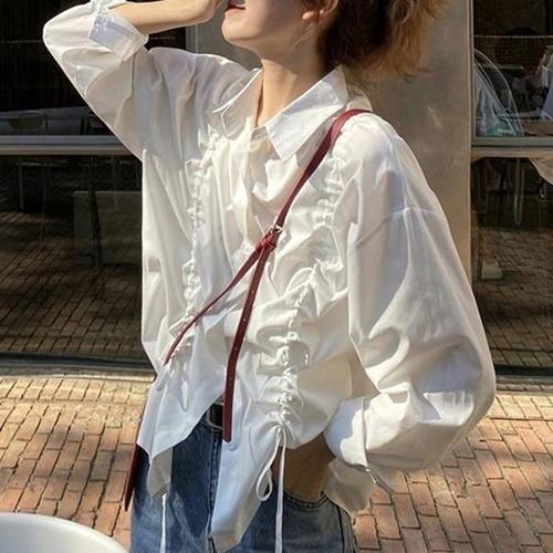 [헤이데이즈]1108 소매 핀턱 루즈핏 롱 셔츠 화이트셔츠 흰셔츠 여성남방