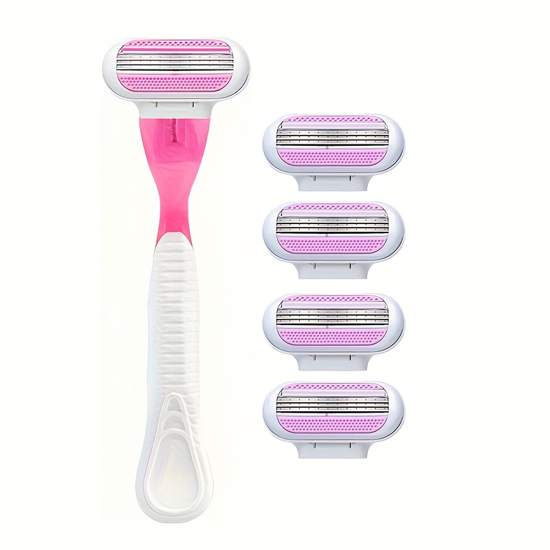 TEMU 여성용 삼중 스테인리스 스틸 면도기 - 교체 가능한 날로 비키니, 겨드랑이, 다리털 제거용 - 가벼운 베이지색 보습 날, 여행용 제모기, 뷰티 필수품 (교체 가능한 날 헤드)