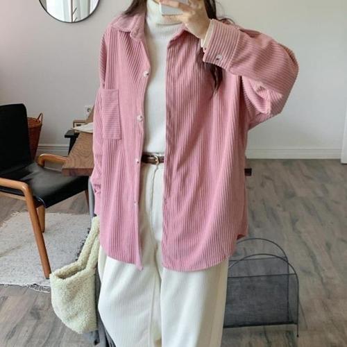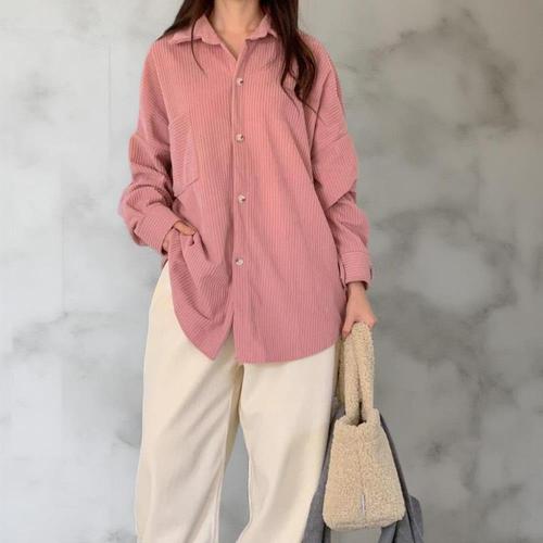[옷자락]여성 골덴 셔츠 포켓 루즈핏 힙커버 핑크색 블라우스