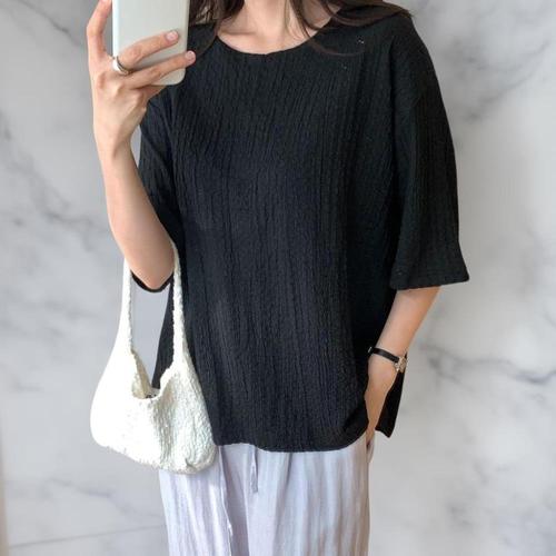 [다잇템][다잇템] 여성 링클 힙커버 반소매 엠보 편한 SS 박시핏 티셔츠_22000402_588872