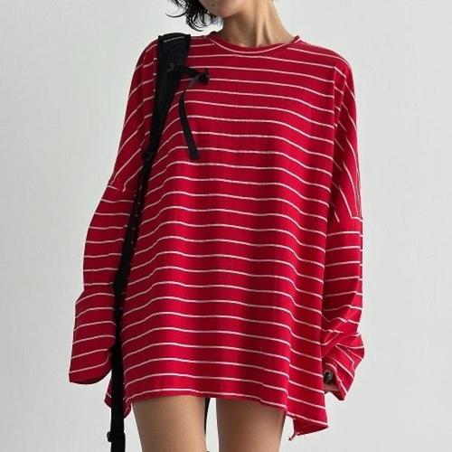 [신상오픈런]|KST9453|여성용 루즈핏 스트라이프 여름 긴팔 얇은 힙커버 티셔츠_21928811_597559