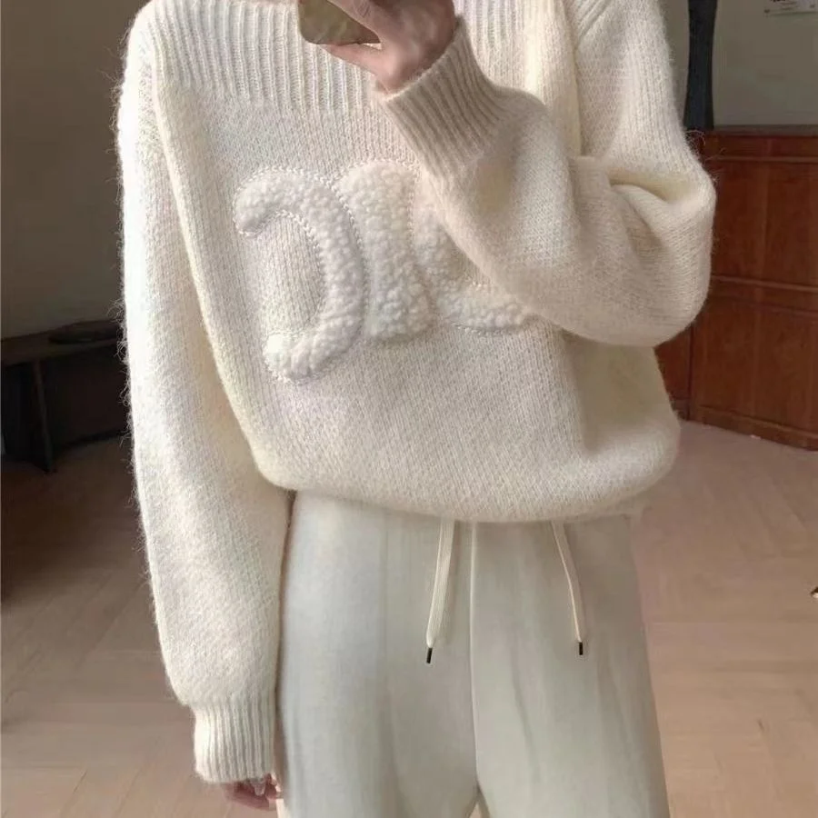 2025 라이트 럭셔리 틱톡 가을 겨울 패션 자수 라운드넥 니트 스웨터 패턴 스웨터 캐주얼 따뜻한 남성용