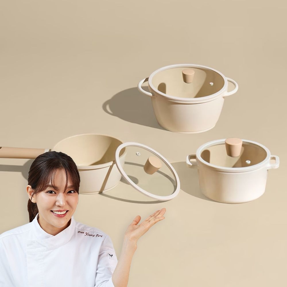 국내생산 인덕션겸용 세라믹 양수&편수냄비 3종 1인가구세트 베이지