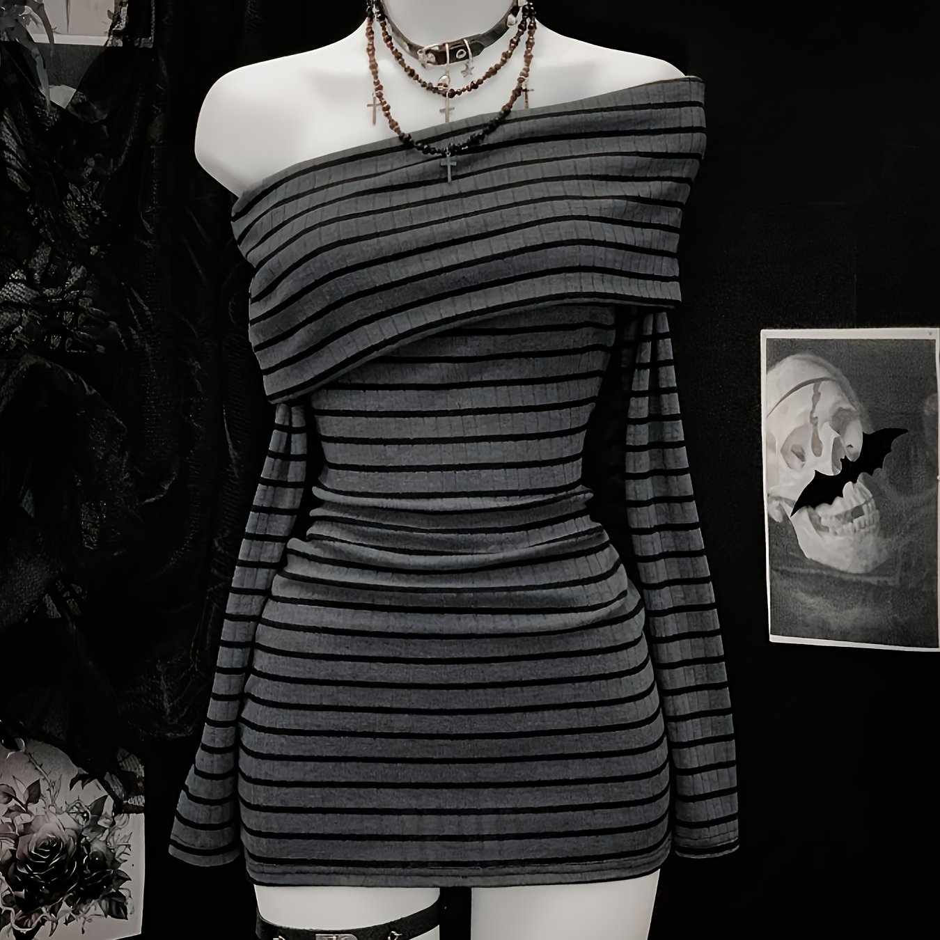 TEMU 여성용 우아한 스트랩리스 비대칭 숏 미니 드레스 - 블랙 & 그레이 스모크 드레스, 바디콘 핏, 가을/봄용 숏, 캐주얼에서 파티웨어까지, 세탁기 사용 가능 (비-) - 소사이즈 스타일 의상