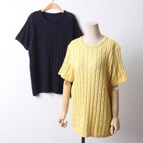 [셀러허브_여성트랜드패션]빅사이즈 504 꽈배기짜임니트반팔티 DEBD160