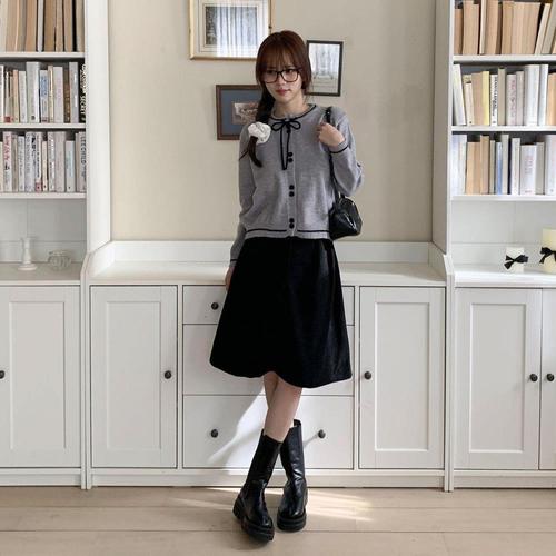 |KHK1883|여성 겨울 필수 아이템 따뜻한 기모 코듀로이 밴딩 중간 길이 스커트