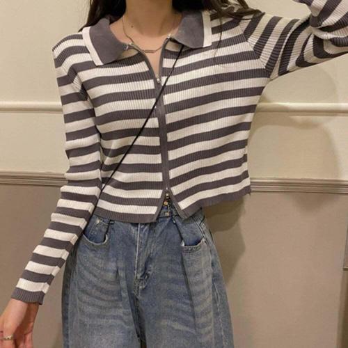 [셀럽하우스]여성 NIAA2855 스트라이프 집업 카라 티셔츠 투웨이 지퍼 2컬러