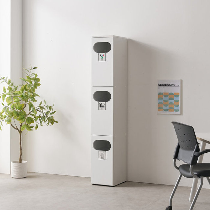 우먼 분리수거함 쓰레기통 수납장 3칸 스윙도어 카페 편의접 사무실 탕비실 재활용분리수거함 주방수납장