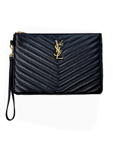 생로랑 마틀라세 레더 골드 모노그램 A5 파우치 블랙 379039CWU011000