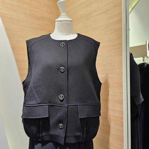 [더아이잗뉴욕]더아이잗2024SS 봄최신상 금속단추라운드숏정장베스트IP3M0VT701