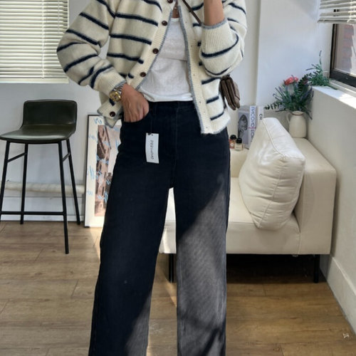 다비몽 / 흑청으로 온 마테라 기모 절개 흑청바지 (S-3XL)