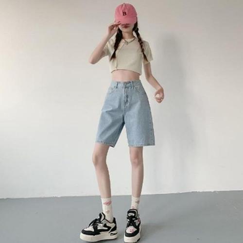 [엄지척]여성 하이웨스트 데님 반바지 5부 청반바지 와이드핏_20022852_667501