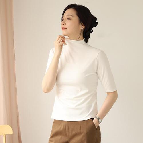 [엄지척]여성 라운드넥 5부 티셔츠 여자 슬림핏 반팔티_19611049_667501
