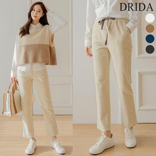 드리다 겨울 코듀로이 골덴 빅사이즈 일자 기모 밴딩 팬츠 40-50대 미시 중년여성 엄마옷 캐주얼 선물