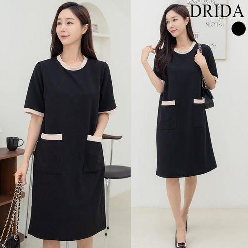 [드리다]여성 여름 포켓 스판 빅사이즈 반팔 원피스 40-50대 미시 중년여성 엄마옷 등원 출근 하객 모임