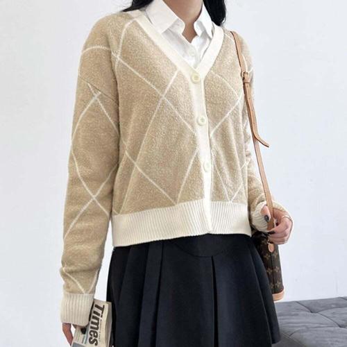[셀럽하우스]데일리 YWLH5061 여성 니트 가디건 여자 부클 체크 긴팔 가디건
