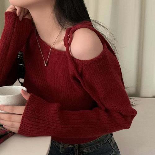 [셀럽하우스]여성 MEAJ5061 리본끈 오프 숄더 니트 E80
