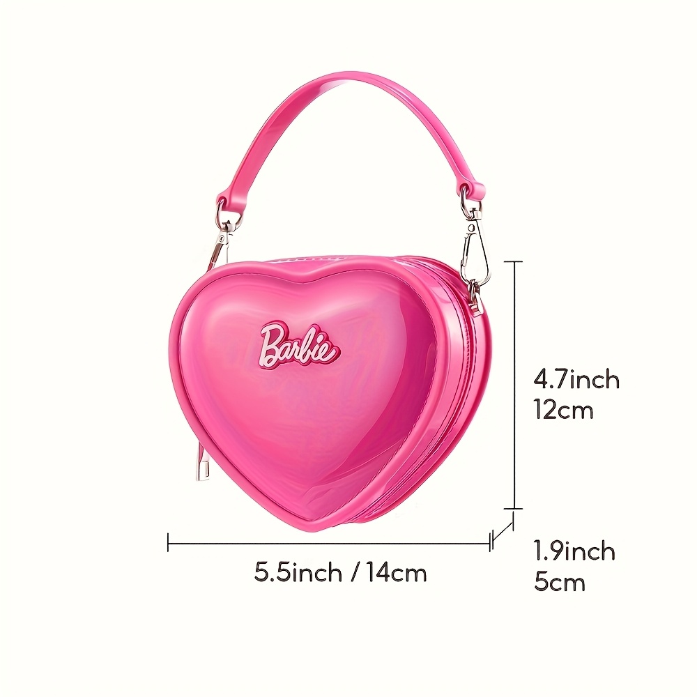 TEMU 미니소 바비 하트 모양 젤리 백 - 귀여운 핑크 합성 가방, 조절 가능한 스트랩, 지퍼 클로저 & 골드톤 하드웨어, 여성용 컴팩트 디자인, 일상 사용 또는 특별한 날에 완벽, 귀여운 퍼스, 장난기 있는 액세서리, 내구성 있는 지퍼 클로저, 여성용 핸드백, 여성용 지갑, 여성용 이브닝 클러치