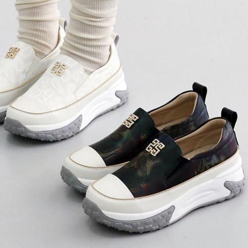 [더힐]슈즈 큐빅 여성여자 슬립온 스니커즈 운동화 5cm sjbad-BL574