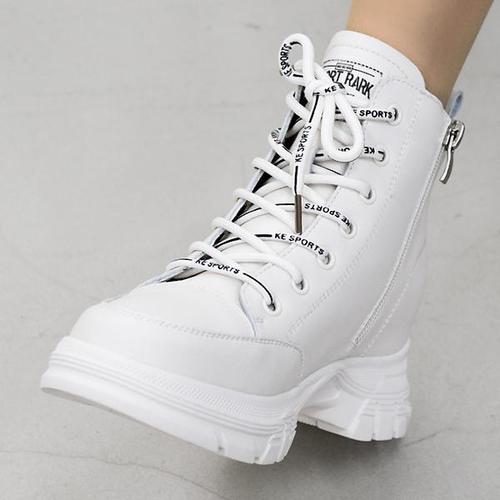 [더힐]슈즈 가죽콤비 레이스업 여성여자 운동화 하이탑 스니커즈 앵클부츠 5cm smG435