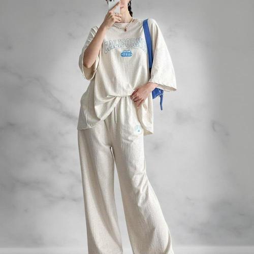 [미라클세븐]여성용 박시 프린트 7부 반팔티와 와이드핏 밴딩팬츠 세트