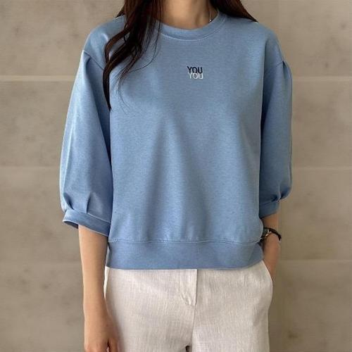 [다잇템][다잇템] 여자 칠부 크로쉐 반팔맨투맨 라운드 벌룬 티셔츠_21008720_588872