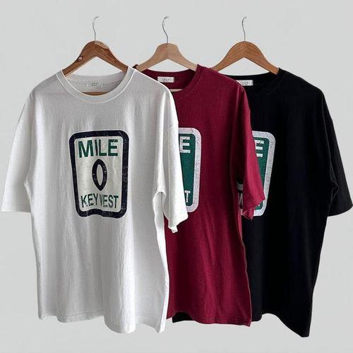 [미라클세븐]여성 빅사이즈 7부 소매 빈티지 프린트 캐주얼 반팔 티셔츠