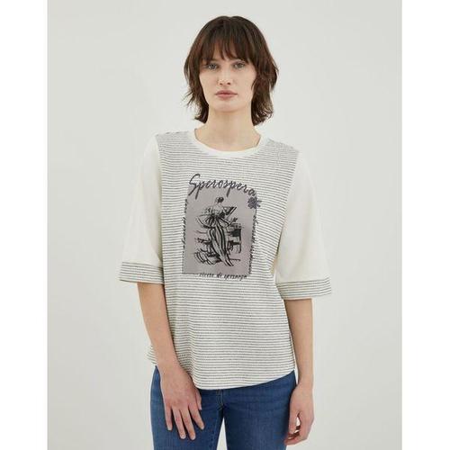 여성 자수 포인트 스트라이프 7부 티셔츠 ALTRM4416-915
