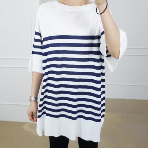 [오너클랜]인기상품 여성 롱 7부 스트라이프 니트 트임 티셔츠 빅사이즈 [WAD9768_251013]