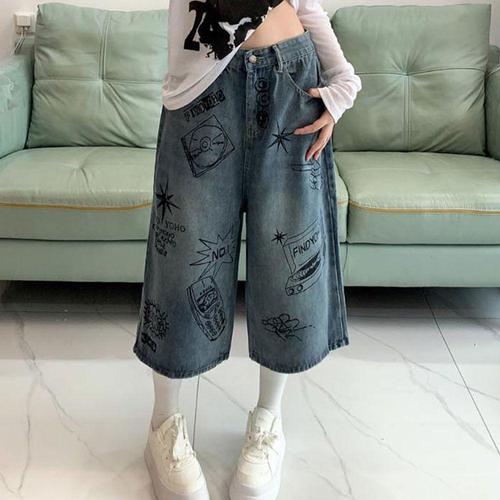 여성 7부 데님 팬츠 멋스런 여름 와이드 청바지 WFN3LTQ