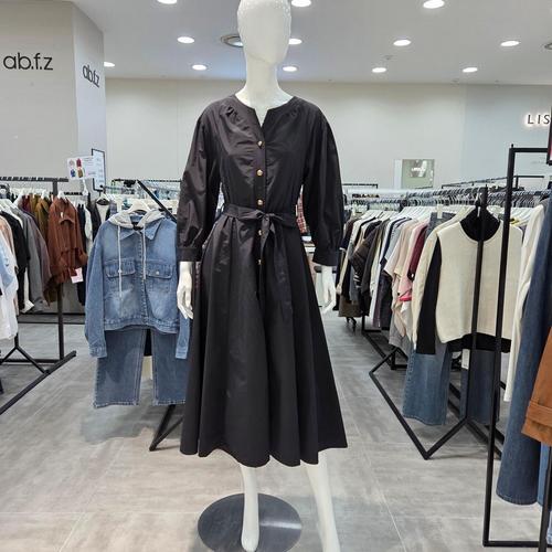 [ab.f.z]AFZ4HO32/깔끔 셔츠형 캐주얼 소매 7부 허리 라인 벨티드 플레어 롱 원피스_IC