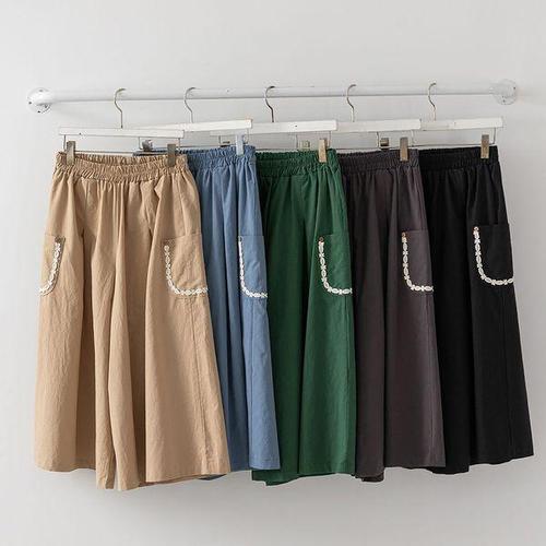 [옷자락] 여성 레이스 카고 반바지 밴딩 와이드핏 칠부