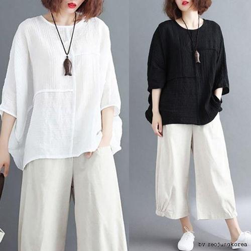 빅걸스토리 루즈핏 브이넥 A라인 린넨 블라우스