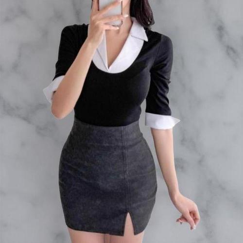 [엄지척]여자 브이넥 오피스룩 블라우스 티셔츠 7부 v넥 셔츠_19642366_667501