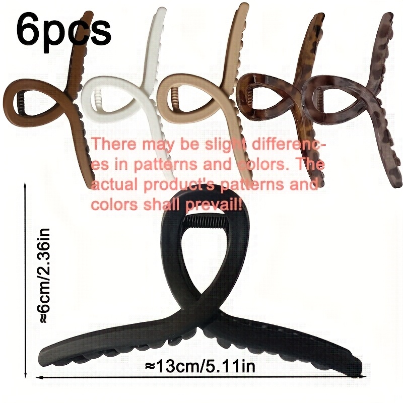 TEMU 6개 세트 크로스형 초대형 헤어 클립 (13cm/5.11인치) - 매트 & 프린트 스타일 포함 - 두꺼운 머리용 스타일링 핀, 샤크 클립|머리핀