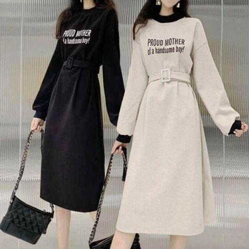 [큐즈]봄 롱 원피스 허리벨트 데일리룩 데이트룩 빅사이즈 77사이즈 88사이즈 블랙 베이지 WL088
