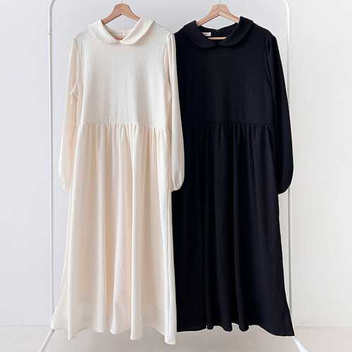 [옷자락] 여성 간절기 카라넥 퍼프 77사이즈 긴 원피스