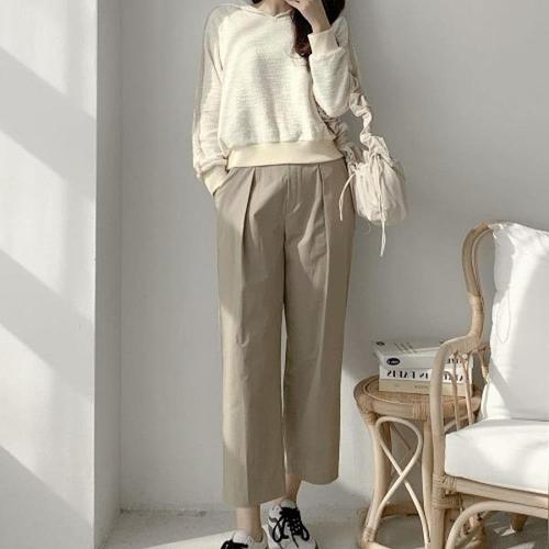 여성 뒷밴딩 핀턱 8부팬츠 봄 일자핏 면바지_3