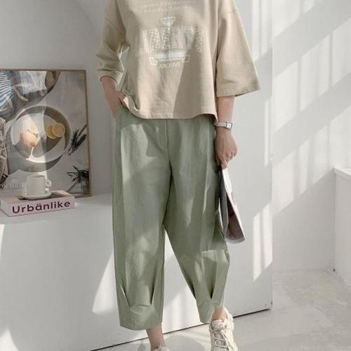 [다잇템]여성 핀턱 배기 8부팬츠 봄 뒷밴딩 바지