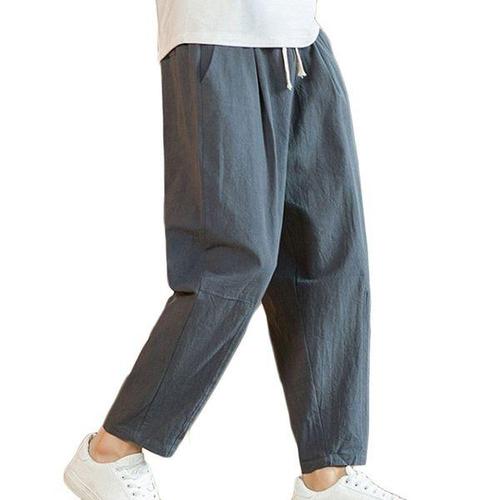 린넨 소재 남성용 8부 캐주얼 밴딩 바지 데일리 팬츠